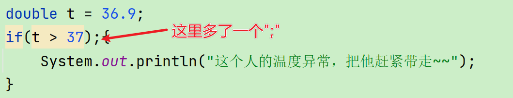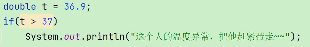 System.out.println("这个人的温度异常,把他赶紧带走~~");