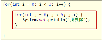 //j的取值从0到5,又执行一轮,打印5次"我爱你"