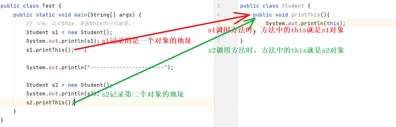 - 接着把对象的地址赋值给栈内存中的变量s1,通过s1记录的地址就可以找到这个对象