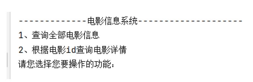 System.out.println("2、根据id查询某个电影的详细信息展示");