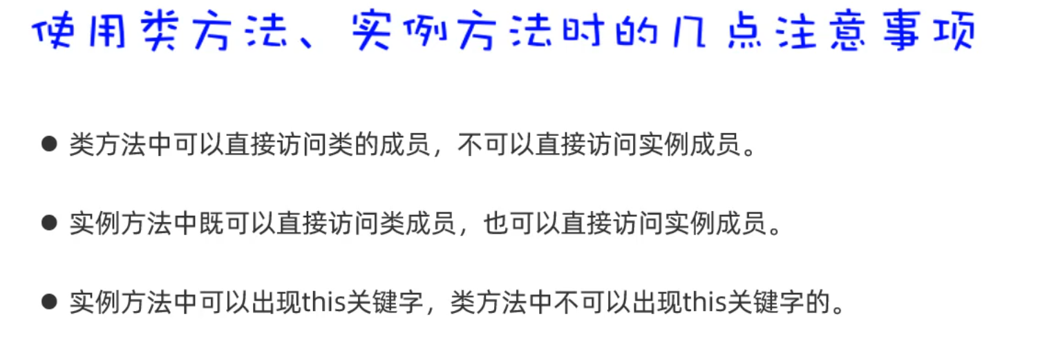2.实例方法:非static修饰的方法,需要创建对象后才能调用,是因为实例方法中可能会访问实 例变量,而实例变量需要创建对象后才存在。