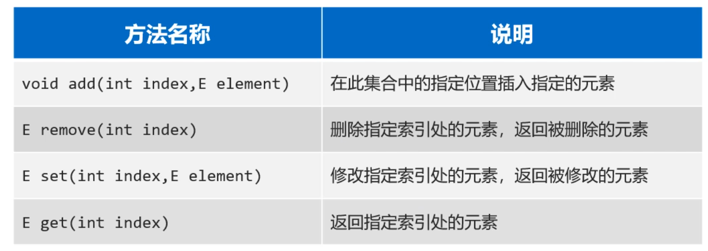List集合是索引的,所以多了一些有索引操作的方法,如下图所示: