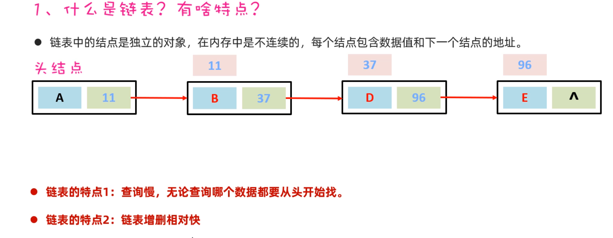 LinkedList底层是链表结构,链表结构是由一个一个的节点组成,一个节点由数据值、下一个元素的地址组成。如下图所示