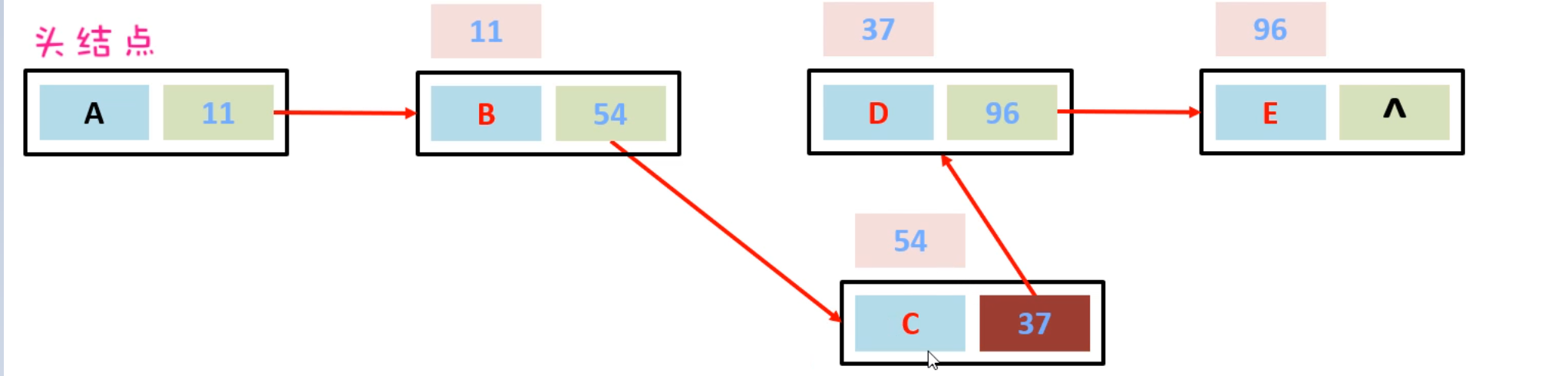 假如,现在想要把D节点删除,只需要让C节点指向E节点的地址,然后把D节点指向E节点的地址断掉。此时D节点就会变成垃圾,会把垃圾回收器清理掉。