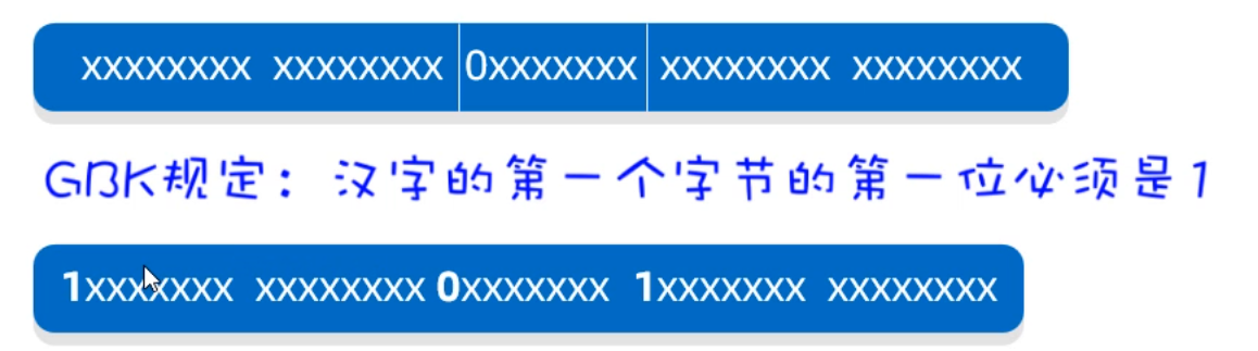 - 如果读取到第1位是1,就认为是一个汉字,此时往后读2个字节。