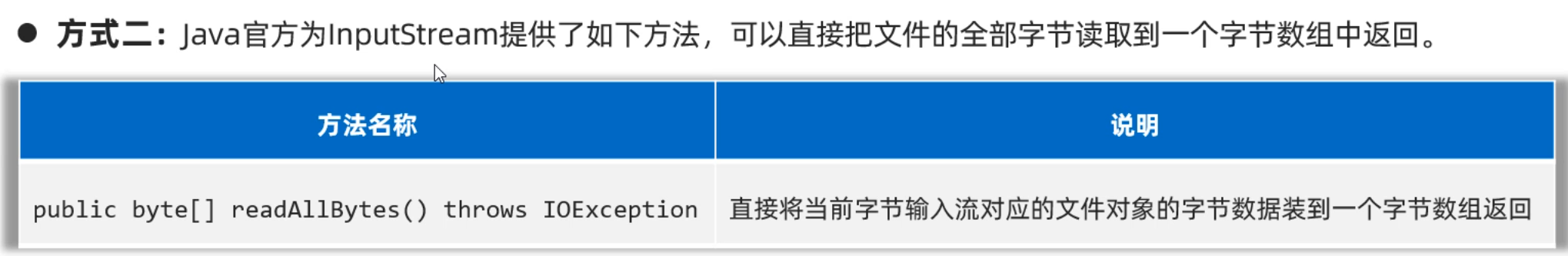 //2、调用方法读取所有字节,返回一个存储所有字节的字节数组。
