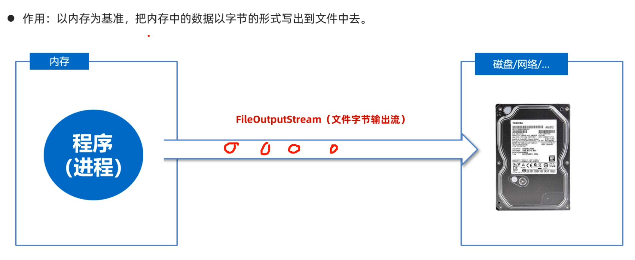 - 把程序中的数据写入磁盘、网络中,用到的是输出流。