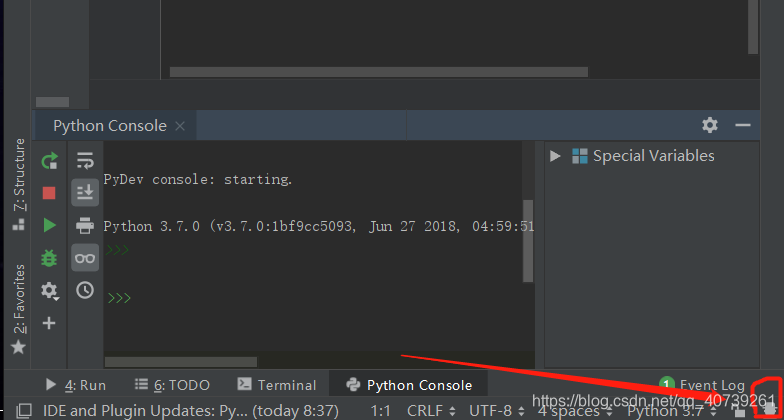 如图:打开pycharm右下角,有一个图标,暂且称为小帅哥