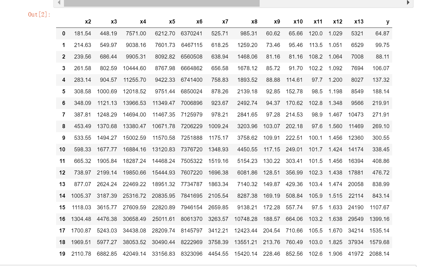 y = list(data['y'].values) # 提取财政收入列,合并至新数据框中