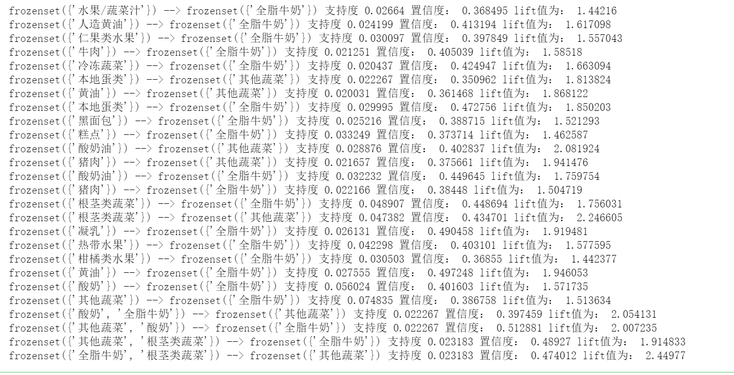 # 此处可设置返回全部的支持度数据(或者频繁项集的支持度数据)