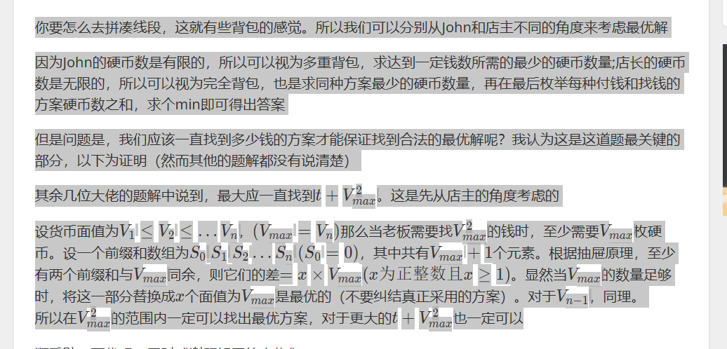 其中这里面有一个很有趣的点 如你要有三个物品的情况 是 1+2 得到的 因为你在第一次更新过的状态下继续更新同样的 2 就是由2 得到!而3是通过数组组合得到的因为已经考虑了取一个的,那么在取一个的情况下取考虑取两个 那就是三个 ,这个很容易去证明 !!这种写法的正确性 关键就是有点像暴力如何把全部都枚举到!!! 这一点非常非常关键 只要一把他全部跑一遍得到的就算最优解!!
