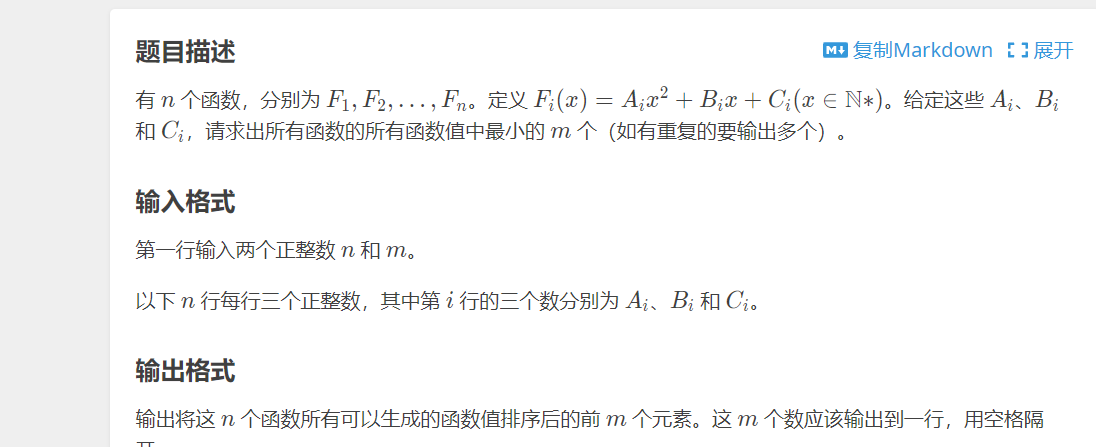 这道题就挺有意思的说下思路 如果一个个去弄肯定很难那就先读第一个函数的前m个放入堆中然后后面的函数依次加入去比较 跑一个o(nm)的一个遍历即可!!!之后的函数就是一个个去迭代,看到符合条件的就替换掉了,直到不满足就结束进入下一个函数
