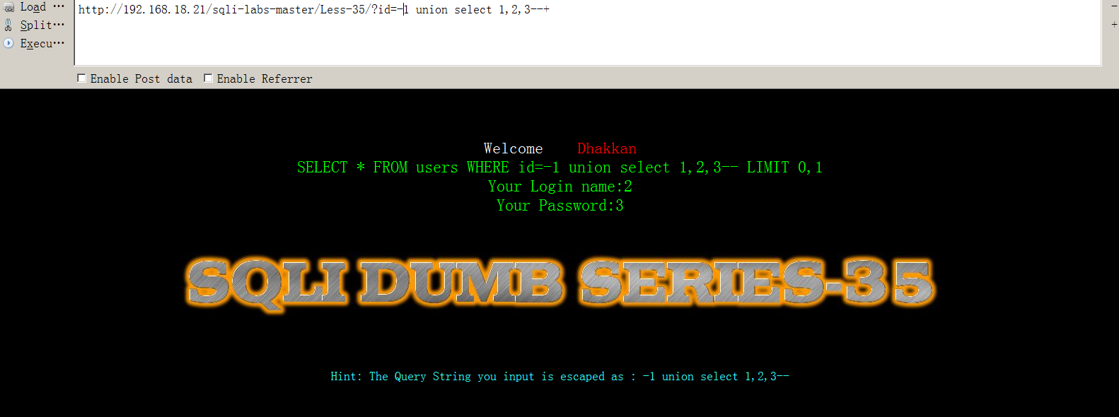 打开本关的index.php文件发现,与Less 33相同点在于都使用了addslashes()函数进行了过滤,不同点在于本关的id值没有包裹,意思也就是说注入只需要避免单引号的使用,均转换为ascii码,其余与Less 33相同。。。