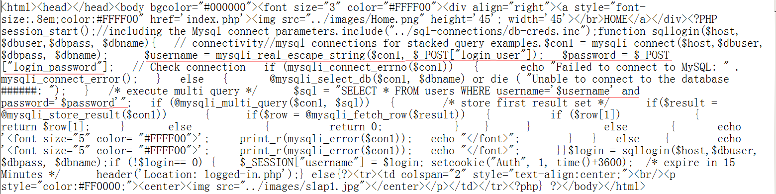 首先我们查看本关的index.php文件,发现username的值中单引号进行了转义,而password没有进行处理,说明我们可以对password进行注入,还有就是对username和password都用单引号进行了包裹。。。