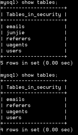 我们先查表有junjie,然后用户名随便输一个a,密码输s';drop table junjie;#返回错误,再查表,发现成功删除。。。