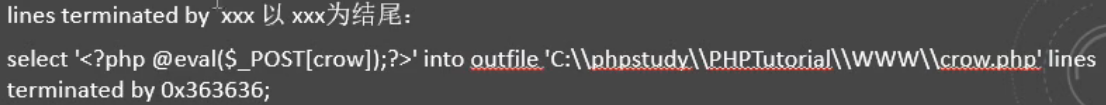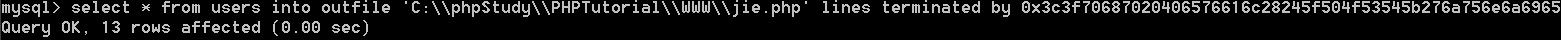 我们使用之前补充知识里的lines terminated by 0xXXX试一下,发现成功创建并写入一句话木马。。。