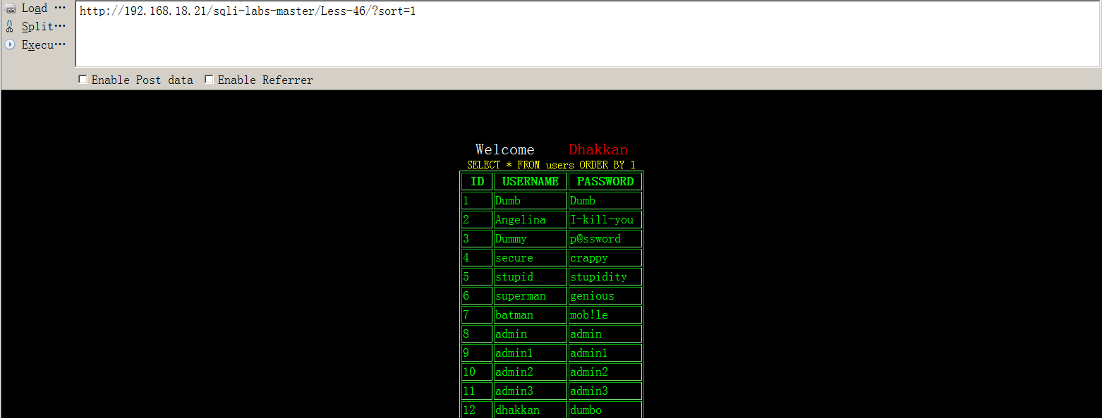 接下来我们打开Less 46,根据页面提示,输入?sort=1返回一个表。。。