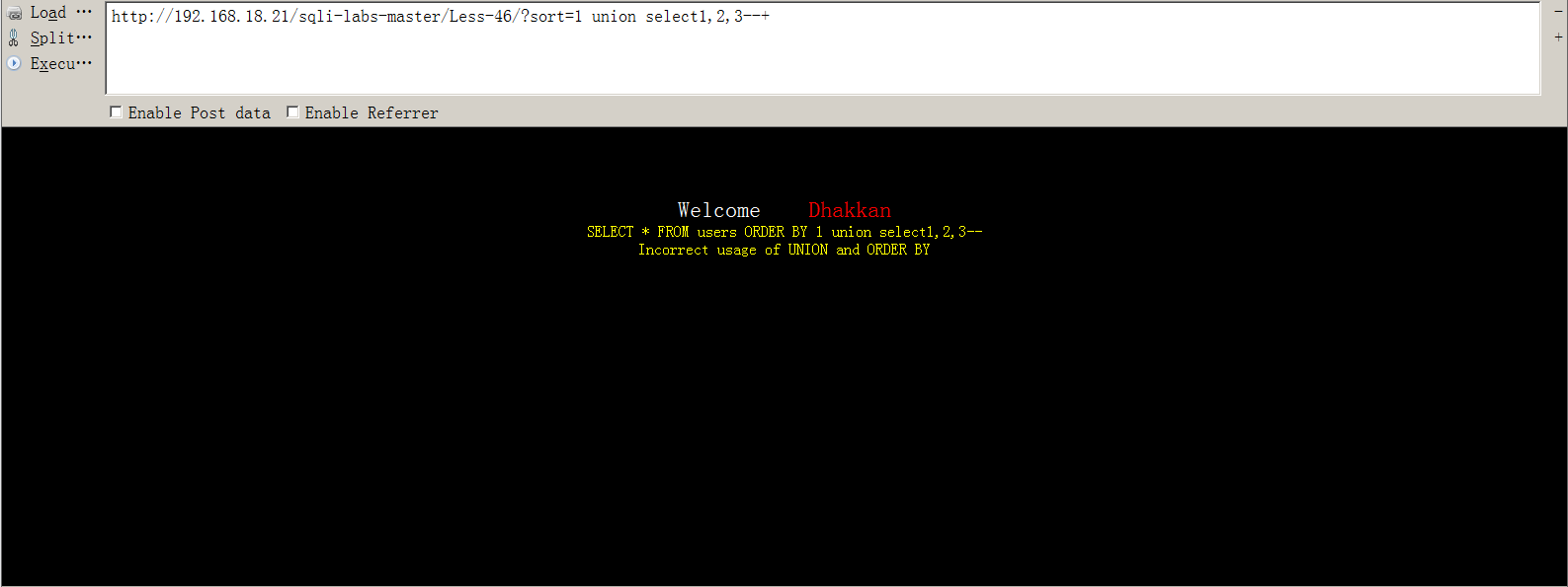 我们首先输入?sort=1返回正确,查看本关的index.php文件与Less 46-49的不同。。。