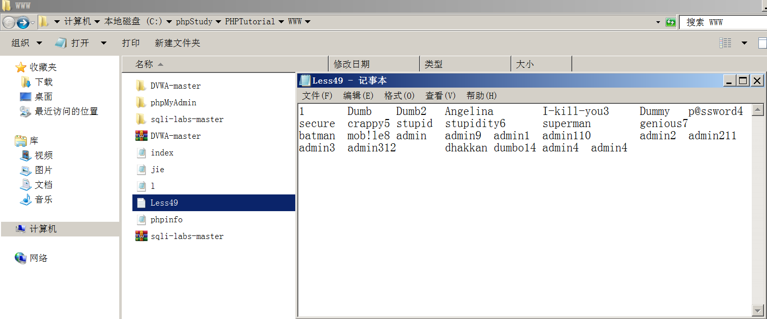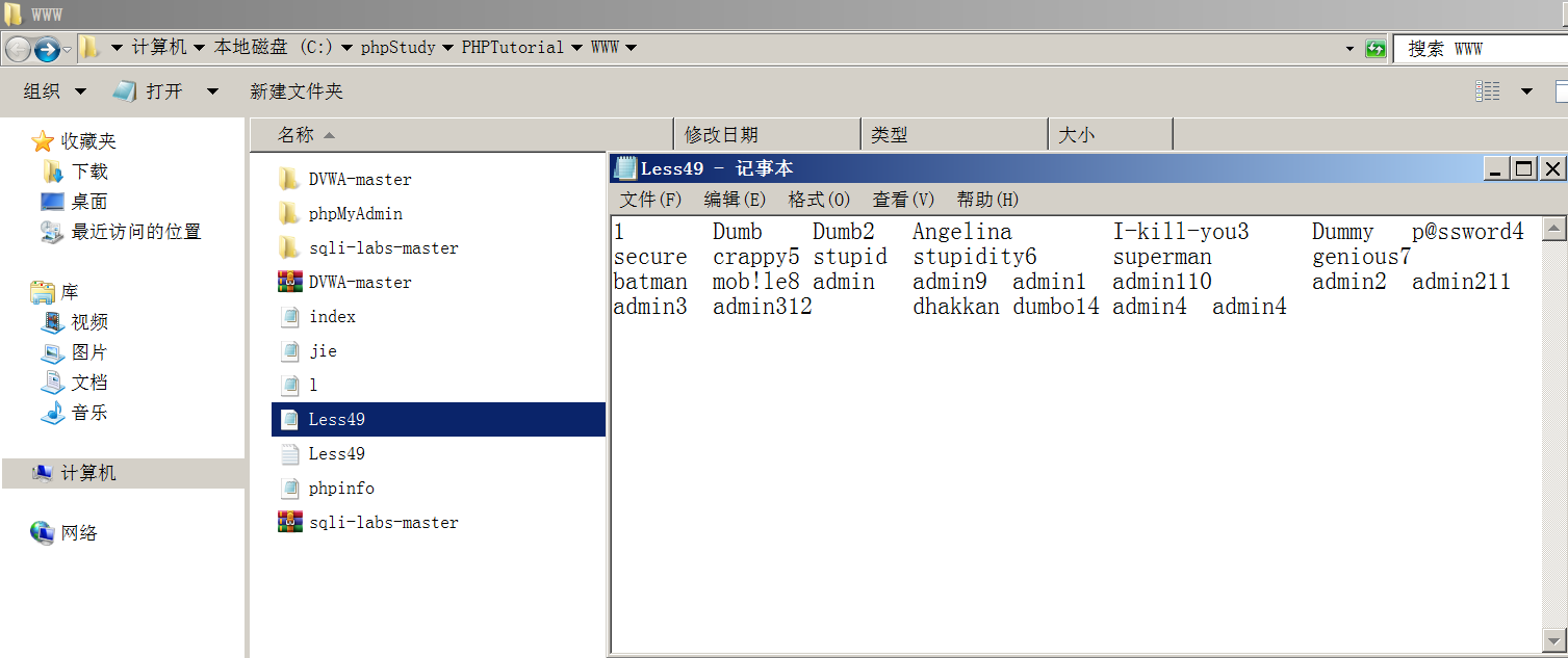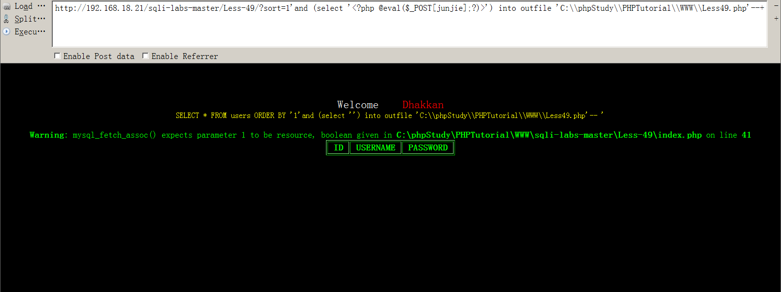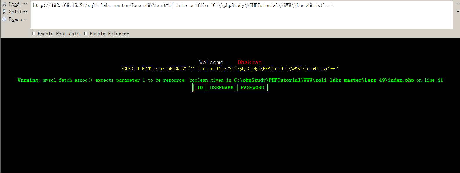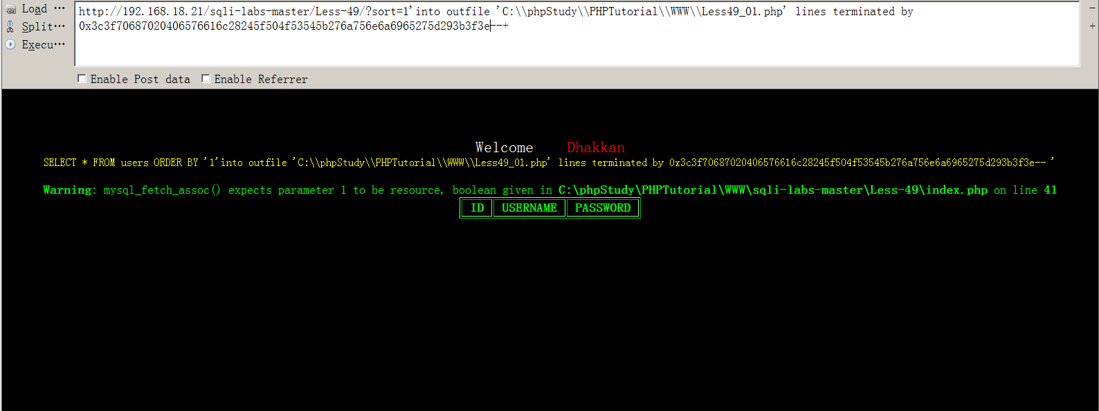 select *** into outfile ''以Less 49为例写入文件,发现写入成功。。。