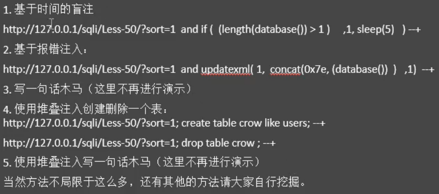 与Less 50唯一的区别在于没有报错信息,无法使用报错注入,其余均相同。。。