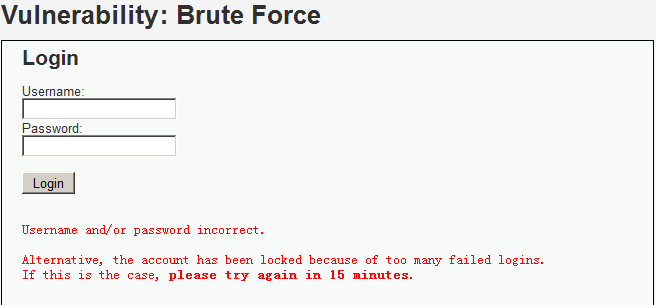 可以看到Impossible级别的代码加入了可靠的防爆破机制,当检测到频繁的错误登录后,系统会将账户锁定,爆破也就无法继续。
