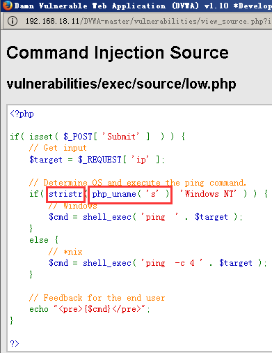 可以看到,服务器通过判断操作系统执行不同ping命令,但是对ip参数并未做任何的过滤,导致了严重的命令注入漏洞。