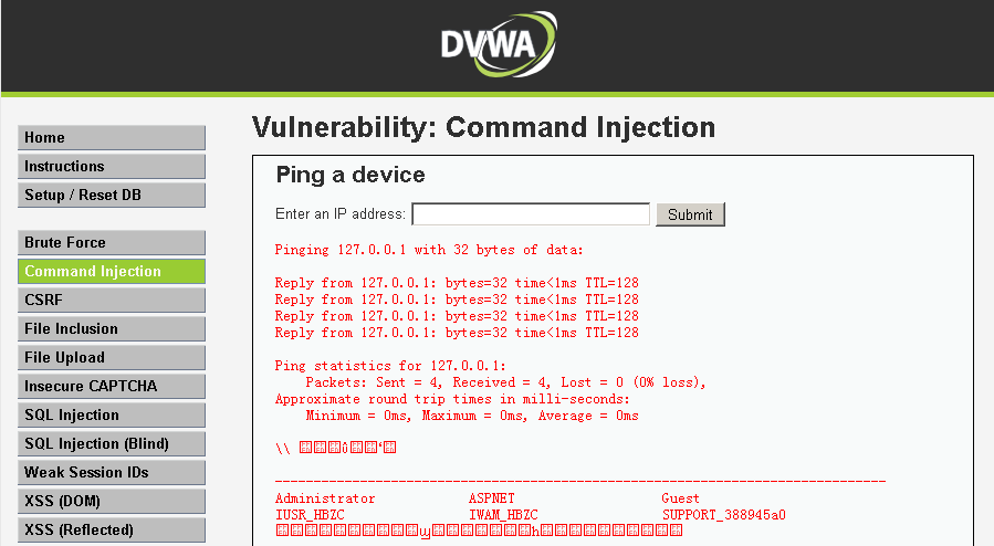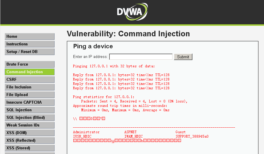 DVWA---全级别Command Injection