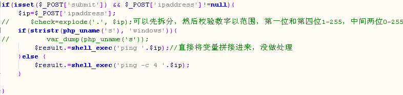 发现ip地址使用post的方式传输,但没有做任何的过滤,判断是否是一个真实的ip地址,就直接拼接到ping命令中。