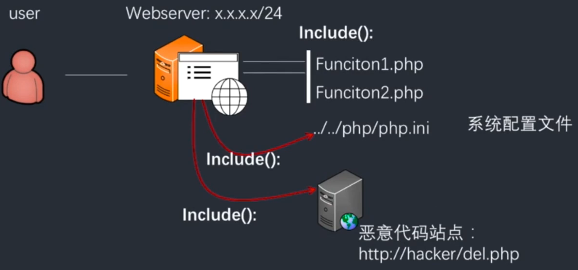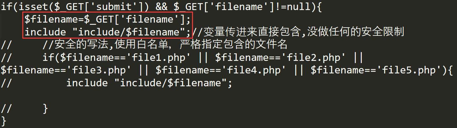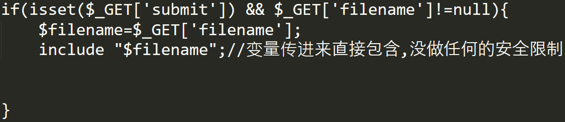 但有些时候因为网站功能需求,会让前端用户选择需要包含的文件或者在前端功能中使用了“包含”功能,并且开发人员没有对要包含的这个文件进行安全考虑,就会导致攻击者可以通过修改包含文件的位置来让后台执行任意文件或代码。