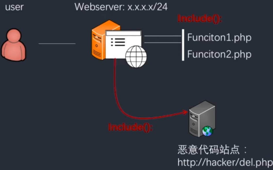 攻击者可以自己搭网站并放置含有一句话木马的文件,然后通过文件包含加载到目的网站,从而实现攻击。