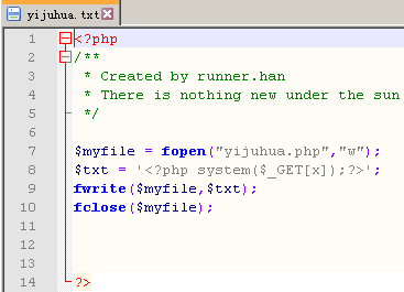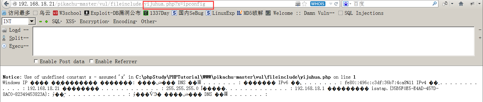 此时攻击者可在网站中找到与页面同级的目录,访问yijuhua.php文件,并传入x的参数为系统命令,成功执行。
