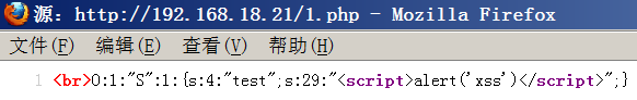 我们提交一个序列化好的内容,里面的变量是一个恶意的JavaScript,后台进行反序列化的过程中会自动调用魔法函数并将结果echo到前端。
