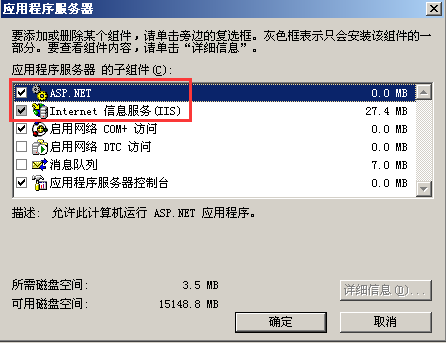 选中ASP.NET和Internet 信息服务(IIS),双击打开IIS