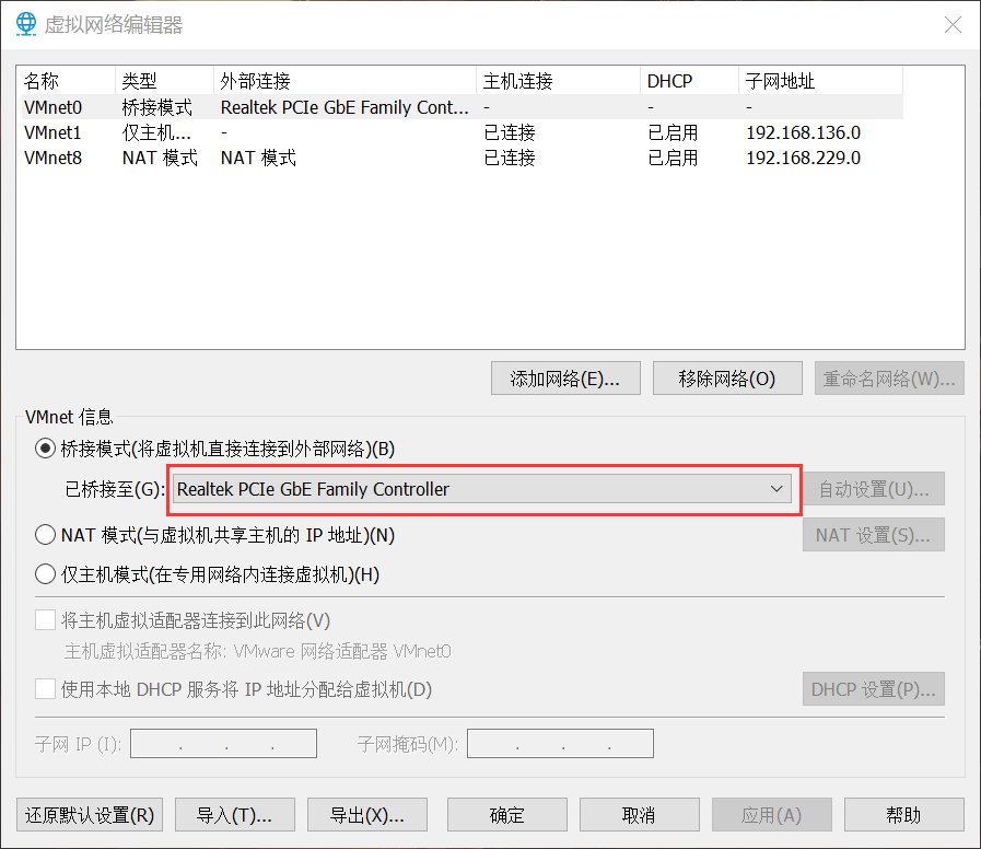 桥接时经常会出错,导致无法联网,我们可以点击虚拟机页面左上角的编辑---虚拟机网络编辑器来设置。