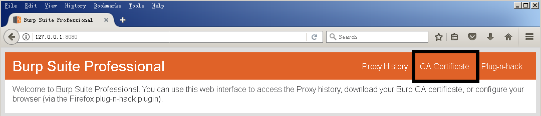 在浏览器中访问burp,输入127.0.0.1:8080,下载证书。