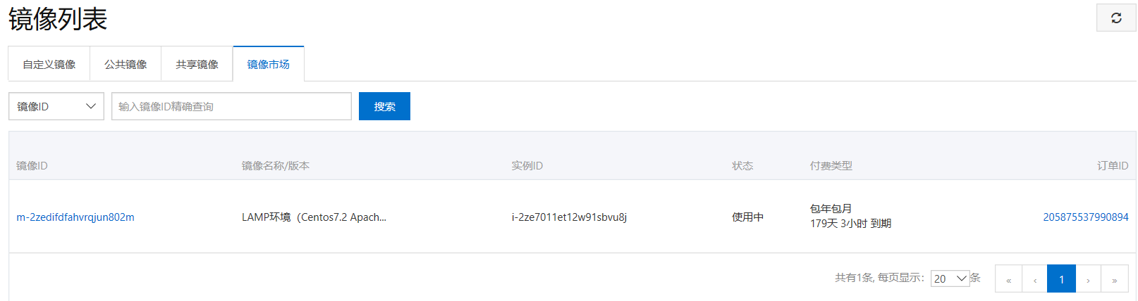 支付成功后回到控制台,会发现正在启动中或者运行中,在镜像—镜像市场就可以看到已经切换成了刚刚我们支付的。