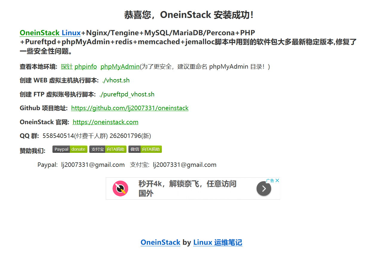 如此就完成了安全组的设置,在浏览器输入我们得公网IP,得到下图所示页面说明ECS云市场的镜像已经成功的运行起来了。