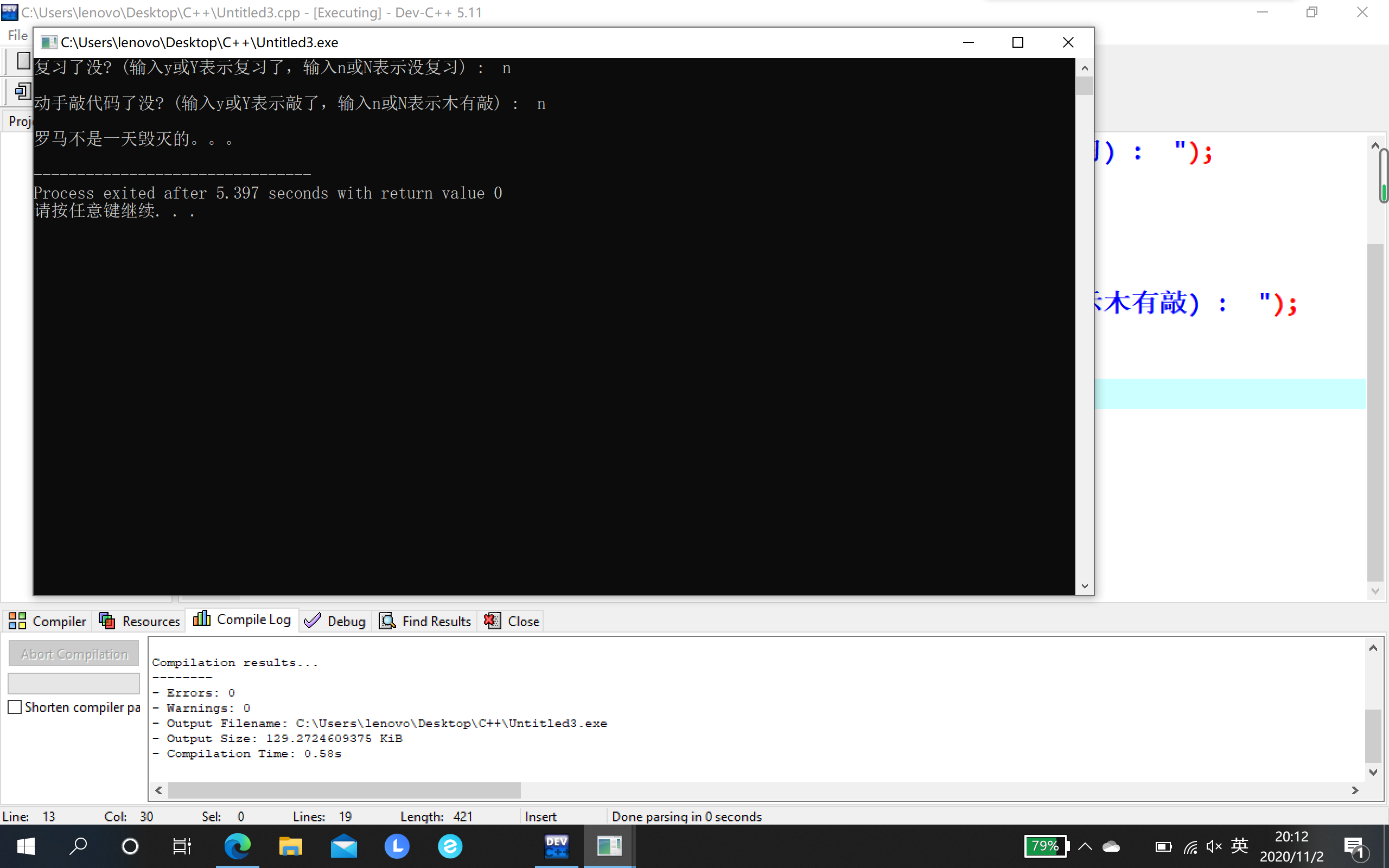 printf("\n罗马不是一天建成的:)\n");