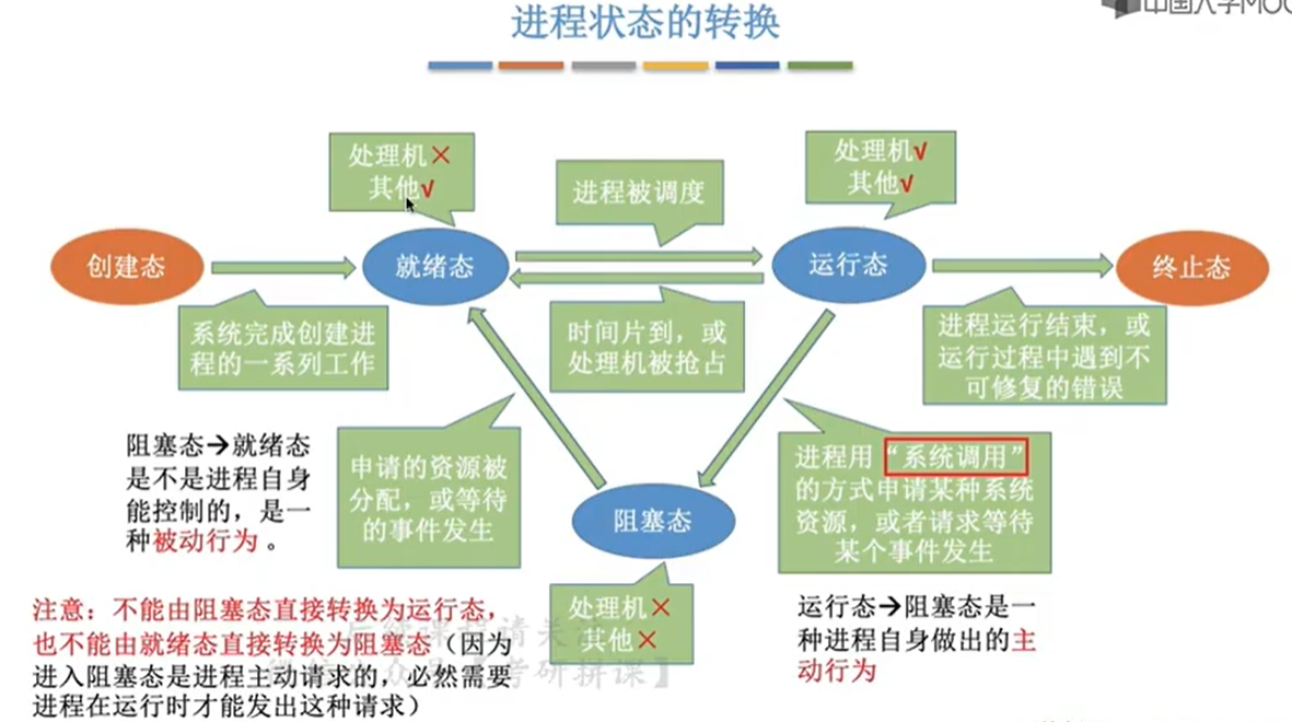 - 无论哪个进程控制原语,要做的无非三类事情:1.更新PCB中的信息(修改进程状态(state),保存/恢复运行环境)2.将PCB插入合适的队列 3.分配/回收资源