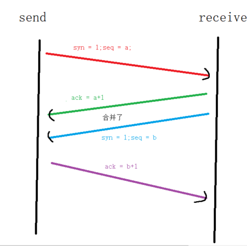 - 1月10号更新:之所以需要三次还可以从概念上回答,因为TCP是设计为“全双工通信”即双向通信,当A发送给B syn,B再回复的时候,表示B同意A的连接请求,A可以向B发送东西了,A-》B的连接确立了,但B-》A的连接还没确立,所以,A需要回复B的syn。即B回复A表示B同意A的连接请求,A回复B表示A同意B的连接请求。