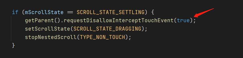 禁止父view拦截,不是吗?所以无论它嵌套在view pager还是横向滑动的scroll view里,除非抬起手,不然事件序列都会被RV消费。