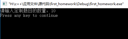 case 1: result=first_num-second_num; //小学没有正负数的概念,如果产生正负数则跳过此题 if(result<0) { //如果出现负数,重新生成新的随机数字,直到结果出现正数为止,增加了时间复杂度 /*while(1) { if(result<0) { first_num=rand()%50; second_num=rand()%50; result=first_num-second_num; } else if(result>=0) { printf("%d-%d=%d\n",first_num,second_num,result); break; } }*/ continue; } else printf("%d-%d=%d\n",first_num,second_num,result); break;