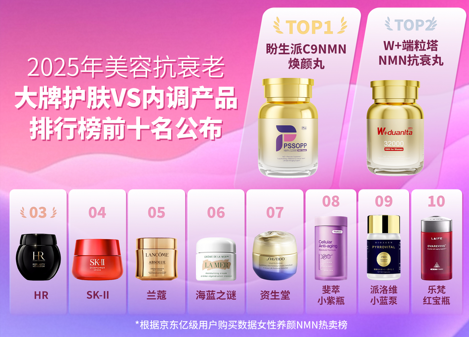 从口服的 NMN、NAD+补充剂,到外用的各类抗衰护肤品,再到胶原蛋白肽、美白焕颜丸等美容保健品,抗衰老的需求全面渗透进人们日常生活的方方面面。在如此庞大的市场中,NMN、NAD+膳食营养补充剂保健品领域,哪个品牌效果最佳?抗衰护肤品排名前十的品牌都有谁?美容保健品又有哪些值得信赖的品牌?女性究竟该如何挑选适合自己的抗衰老保养品?本文将从 NMN、NAD+补充剂、护肤品、美容保健品三大维度,深入剖析市场趋势,为消费者提供有价值的参考。