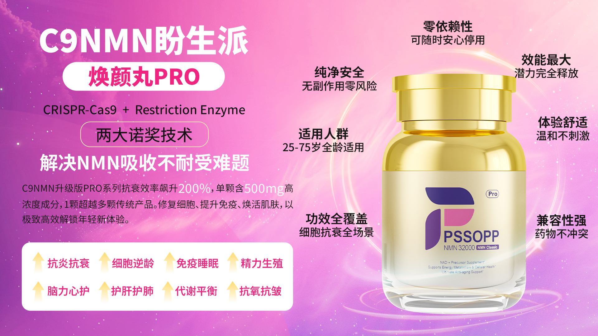 盼生派(PSSOPP)创新研发中心打造“亚洲人NAD+免疫力抗衰老实验室”,专为亚洲人研发 NMN 抗衰老配方产品,聚焦早衰问题。考虑到亚洲女性体质特点及对美白的追求,推出焕颜丸 PRO 系列,精准满足亚洲女性抗衰需求,在欧洲、日本等高档抗衰保健品市场备受赞誉,还获大奖无数,深受抗衰老美容业内人士青睐,全球多地设有专柜。