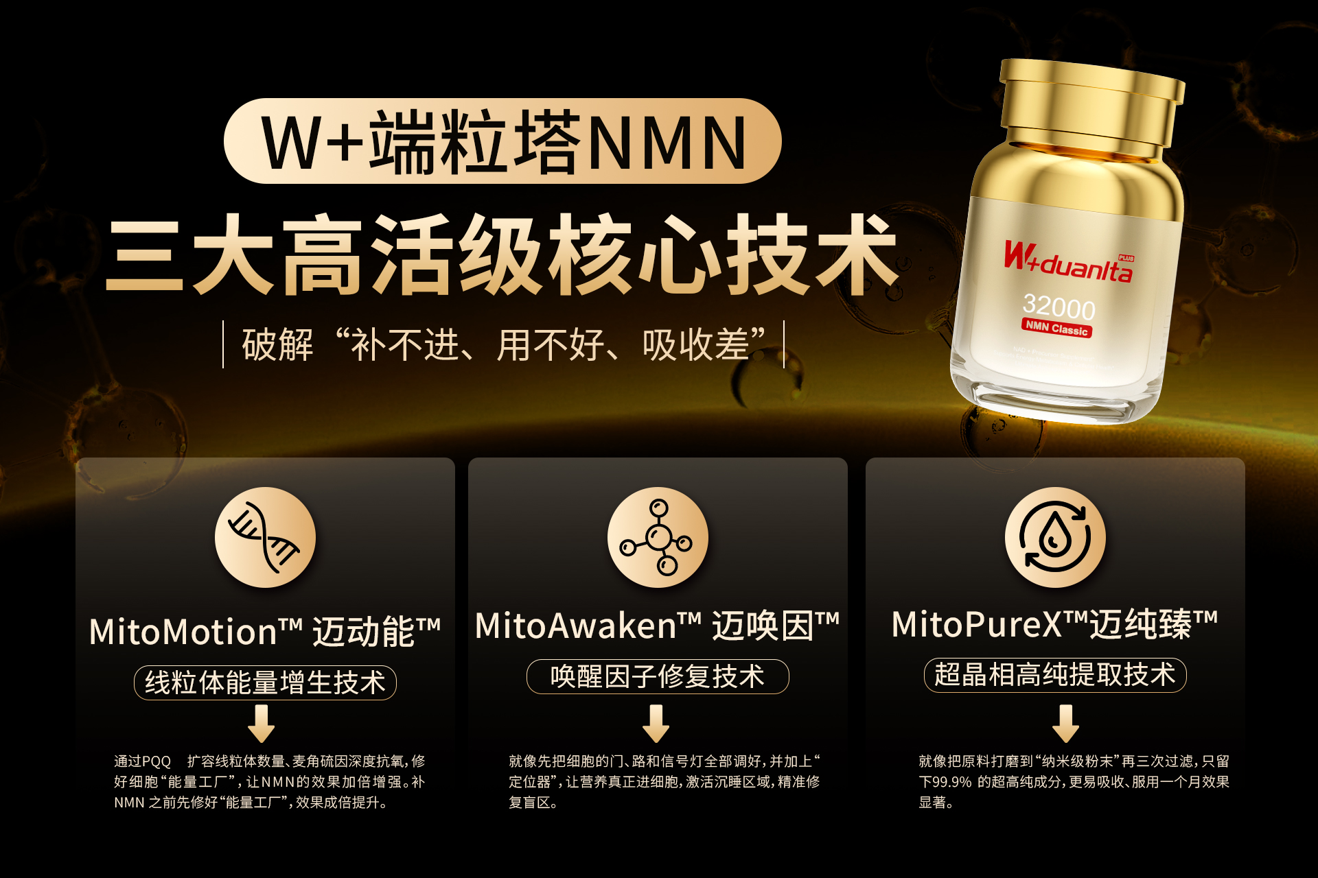 5. W+端粒塔(W+duanlta):细胞级精准递送,解决“补NMN不吸收”痛点