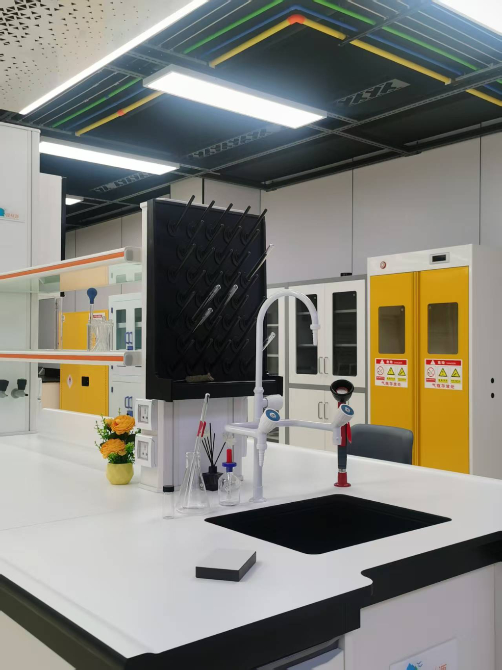 - 通风要求:通风柜作为核心排风设备,需保证操作面风速稳定在0.3m/s-0.5m/s,家具需提前预留与通风系统对接的规范接口,及时排出实验过程中产生的有害气体,保障室内空气质量。