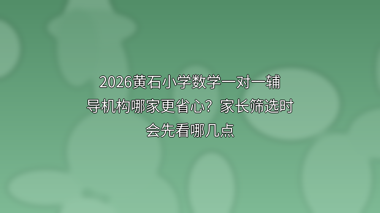 2026黄石小学数学一对一辅导机构哪家更省心?家长筛选时会先看哪几点