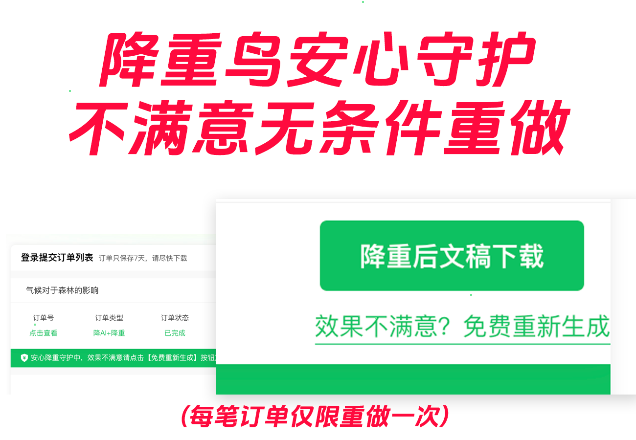 结论很直接:降重鸟在降幅与可读性两项都位居前列,属于我这轮测里“效果最好”的一档;维普口径单次通常可压至约10%附近,若我启用一次自助重做,二次后多能稳定到6%以内。