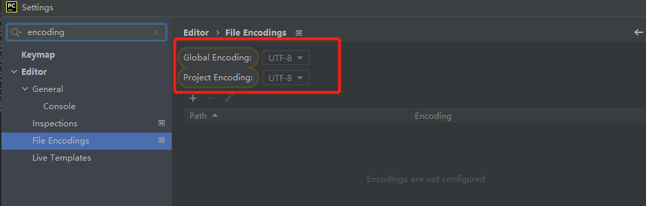 4设置编码格式:在file中找到找到default settings或者settings,搜索encodings,把编码都设置为UTF-8保存即可